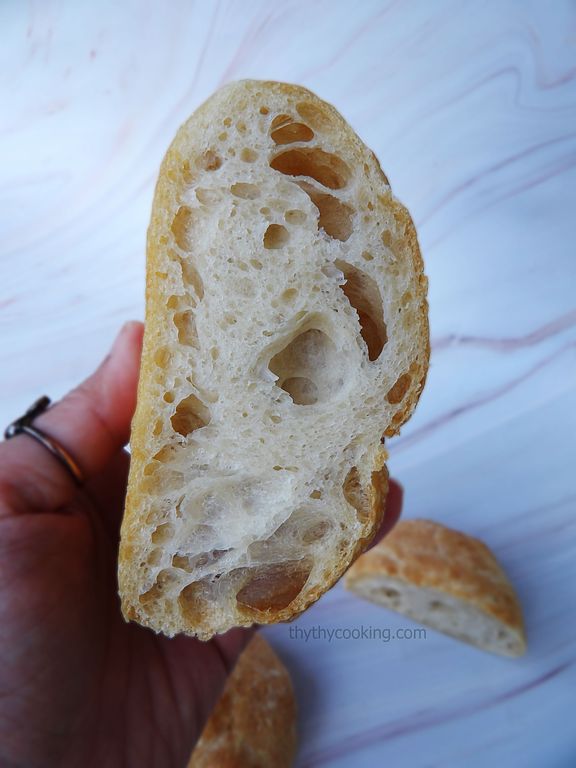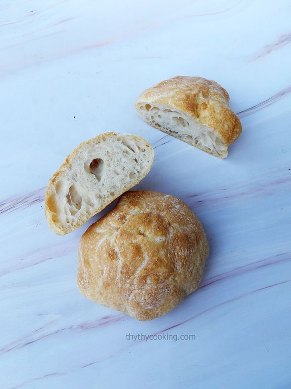 Cái bánh mì trong hình nở lỗ to đùng. Công thức từ vỏ pizza ở đây nhé mọi người. Mình thích làm bánh mì, cũng không hiểu sao mê như vậy, dù mình không đam mê ăn bánh mì. Rảnh cái là lại làm bánh mì. Nhưng mùa hè, 33 - 40 độ C nướng bánh cực lắm, nên đâm ra cũng hạn chế hơn hẳn. Mấy ngày nay chủ yếu ăn các món lạnh, salad pasta, salad cơm trộn, cous cous này nọ. Mùa nào thức nấy ở nước Ý này. BÁnh mì, súp, các món hầm thì dành cho mùa thu và mùa đông. Nghĩ tới 2 mùa này là mệt. Nên thôi, đừng nghĩ ngợi gì. hahahha!