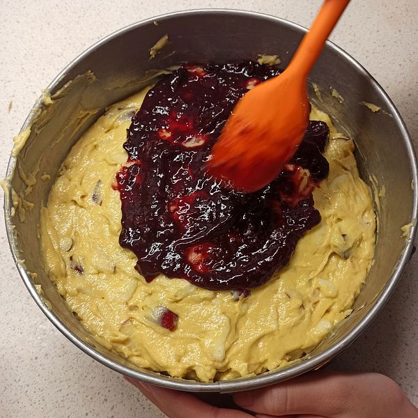 Cho tất cả các nguyên liệu vào thố trừ táo, đánh lên cho quyện trong 5 phút.