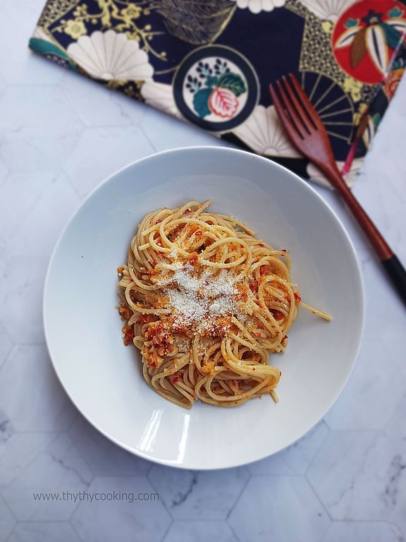 Spaghetti all'aglio e peperoncino is a classic Italian dish known for its simplicity and bold flavors. This pasta is made with just a few key ingredients: spaghetti, garlic, and red chili peppers. The garlic is thinly sliced and sautéed in olive oil until golden and fragrant, while the red chili peppers add a spicy kick. The cooked spaghetti is then tossed in this flavorful garlic-oil mixture, allowing the pasta to absorb the rich, aromatic flavors. Finished with a sprinkle of chopped parsley and a touch of grated Parmesan cheese, this dish is both satisfying and easy to prepare. Spaghetti all'aglio e peperoncino is perfect for a quick, yet delicious meal, showcasing the elegance of Italian cuisine through its straightforward approach and vibrant taste. SPAGHETTI ALL'AGLIO E PEPERONCINO 2.jpg57 KB