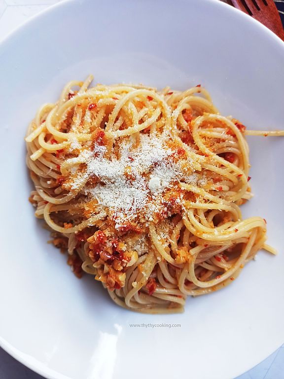 Per dimagrire: Per rendere gli Spaghetti all'Aglio e Peperoncino più adatti alla perdita di peso, utilizza una quantità minore di olio extra vergine di oliva per ridurre il contenuto calorico e di grassi, oppure opta per uno spray di olio d'oliva leggero. Usa spaghetti integrali per aumentare la fibra e ridurre l'indice glicemico, il che aiuta a mantenere la sazietà. Limita la quantità di Parmigiano grattugiato, poiché è denso di calorie, oppure sostituiscilo con una quantità minore di un formaggio a ridotto contenuto di grassi. Utilizza abbondantemente aglio tritato e peperoncino italiano finemente tritato per dare sapore senza calorie extra, migliorando il gusto del piatto mantenendolo leggero.