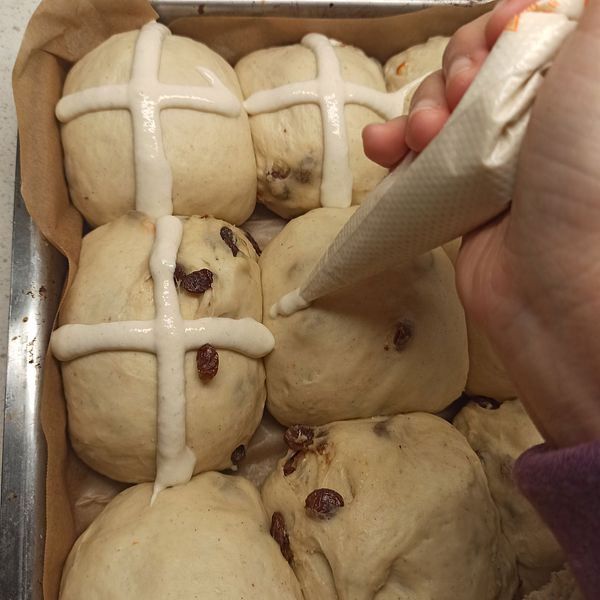 Ở Ý không có ăn hot cross bun, mà họ ăn bánh hình cái chữ thập to, gọi là Colomba. Theo nhìn nhận của mình thì colomba ngon hơn và có vẻ khó làm hơn, vì nó đòi hỏi ủ bánh phức tạp (nếu muốn ngon hoàn hảo như tiệm). Còn nếu ăn tầm 8 điểm, thì làm dễ như hot cross buns. :D Có 1 lần lâu lắm rồi, 1 người hỏi 1 người bạn theo đạo công giáo của mình là tại sao trước lễ phục sinh người theo đạo không ăn thịt, chỉ ăn cá, đó cũng là sát sinh mà. Đúng là theo đạo Phật thì như vậy. Nhưng theo đạo công giáo, thì "ăn chay" của họ là ăn chay hãm mình. Nghĩa là mình sẽ "kiêng" cái thứ mình thích. Hồi ở VN, mình nhớ hình như kiêng có 1 ngày là ngày thứ 6. Có người kiêng 1 tuần thì phải. Sau khi qua đây, mình quen con bạn người đạo Jew (đạo Do Thái?), thì mình mới biết đạo nó cũng có ăn chay hãm mình. Mà nó ăn những 40 ngày lận. Nó chọn thứ nó thích nhất là chips/crisps và kiêng. Trong tiếng anh, ăn chay hãm mình là lent, nên ý nghĩa có nó rõ ràng hơn hẳn trong tiếng Việt (hay do mình dốt nhỉ?? chà!), vì tiếng việt ăn chay là nghĩ tới ăn theo đạo Phật, tiếng anh thì họ gọi là vegan (vì mọi người không ăn trứng, nhưng không biết có ăn sữa và các thứ khác không). Thôi thì tóm gọn lại là drama qua đây, học được chữ lent và biết rằng đạo Do Thái cũng ăn như vậy và họ cũng có Phục Sinh. Lễ Phục Sinh là 1 lễ lớn của nhiều nước Châu Âu. Các đồng nghiệp của mình ở Đức, Pháp, Tây Ban Nha đều đồng loạt đi nghỉ xa tầm 1 tuần. Ỏ Ý trường đóng cửa cũng 1 tuần. Ở Tây Ban Nha, mé Nam, Andalucia thì họ làm lễ phục sinh hoành tráng kinh lắm. Nếu mọi người có dịp đi Cebilla mùa này thì sẽ thấy lễ hội tưng bừng. :D Bánh hot cross buns này mình lấy công thức từ tạp chí nấu ăn của Tesco, con quỷ bạn người Anh của mình nó công từ Anh qua hàng năm. Cứ khi nào nó về là nó công qua, nó đọc xong thì nó thẩy cho mình. Bây giờ nhà mình đầy tạp chí tiếng Anh. NGhĩ cũng phải công nhận, hồi xưa mơ cái gì, bây giờ có cái đó. Hồi nhỏ mình thích học tiếng anh, đam mê đọc tạp chí tiếng ANh. Mà làm gì có tiềng mua hả các bạn! Muốn mua cũng đâu có dễ. Thời đó chỉ có cái tiệm sách sang chảnh trên đường NGuyễn Văn Cừ hay Nguyễn Huệ, khu phố Tây mới có lèo tèo mấy cuốn thôi. Tui hay đi lượn các tiệm sách cũ, chụp giật được cuốn nào thì chụp. Thường là những tạp chí rất cũ, và của Úc chứ không phải Mỹ và càng không phải Anh. :D Có 1 lần, con bạn thời tuổi teen nó về chơi, nó mang cuốn tạp chí Glamour nó đọc trên máy bay về rồi nó thẩy cho mình. Chời ơi, hạnh phúc ngập tràn, bây giờ vẫn còn nhớ cuốn đó và mùi thơm nước hoa Amor Amor (cuốn đó nó giới thiệu chai nước hoa này, và mình đam mê cái mùi này từ đó, bây giờ trong tủ cũng có 1 chai, hí hí!! lúc mở cuốn tạp chí ra, mình nói ước chi 1 ngày mình có tiềng mua 1 lọ. Sau đó tầm 3 năm mình đi làm, mua 1 chai mà đau hết lòng mề. Sau đó qua Ý, mua thêm 1 chai. Sau đó nhiều năm hơn, mình đi làm lại thì rủng rỉnh hơn tý mua 1 chai thật sự không phải suy nghĩ quá nhiều. Cũng gian truân phết để "thực sự" mua được 1 chai theo đúng "level" mình từng mơ ước. Chứ mua mà nhịn ăn thì chưa phải là giỏi giang gì. :D). Nói tới tạp chí thì bây giờ đầy. hahahha!! ước có thật nhiều tạp chí tiếng Anh để đọc cho sướng mắt, bây giờ nhiều quá, không đủ thời gian đọc. 😆hot-cross-bun-bánh-mì-ngọt-phục-sinh-1.jpg2.05 MB Còn đây là chiếc hot cross bun tui làm năm ngoái nè, công thức tại đây: