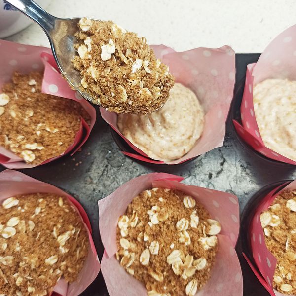 • Dùng muỗng cho phần topping lên mặt muffin.