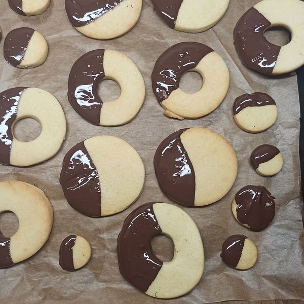 Nhân dịp ông anh rể và thằng cháu ruột dư từ Mỹ qua chơi, tui làm 2 mẻ bánh quy thết vì ổng bảo bánh quy của tui ngon nhất thế giới. Bánh quy là 1 loại bánh dễ làm, muốn ngon thì phải làm thật nhanh tay. Bột không được chảy nhão. Do lượng bơ rất nhiều, bột mà chảy nhão thì hết ngon. Ngoài ra phải dùng đường xay thì bánh mới mịn mượt, không nên thay bằng đường cát thông thường. Muốn làm dễ thì sau khi đánh bột cho quyện, không đánh cho bơ chảy ra nhé, chỉ cần bột quyện lại là được. Nhanh tay cán bột trên 1 miếng giấy baking, sau đó cho nguyên kiện vào tủ lạnh, cho nghỉ 1 tiếng gì đó, thì khi bơ đã cứng trở lại, chỉ cần cắt hình và cho lên vỉ nướng có lót giấy chống dính. Bánh này làm mùa hè, phòng không có máy lạnh thì bột dễ chảy nhão. Nên tốt nhất là làm khi khí hậu mát hoặc nhà có máy lạnh heng. Việc còn lại là chỉ cần nhúng bánh đá chín nguội vào socola tan chảy. Sau đó đặt bánh lên mặt phẳng có lót giấy baking chống dính để khi socola cứng lại là có thể lấy ra dễ dàng. Lại thêm 1 khó khăn vào mùa nóng: Socola không chịu đông lại, hic! Nên tui lại phải cho bánh vào tủ lạnh để socola cứng lại, thì mới có thể mang ra đĩa thết khách. Trời nóng cũng mệt phết. Túm lại là trời nóng chỉ nên ăn những món hạn chế nấu nướng. hihi!! Chứ nấu thì nóng, mà làm bánh quy thì cứ tan chảy ra hết. Làm bánh sinh nhật cũng thế. Cứ sợ whipped cream tan ra. hic! Hôm nọ mình làm việc online với 1 bạn đồng nghiệp người Swedish. Mình nói Ý nhà tui nóng lắm J ơi. Ảnh nói vậy hả, nhà tui mía bắc mà cũng nghe bảo rất nóng, nghe đâu tuần sau 29 độ. Trời! hahahah! nhà tui mà nóng là 39 độ. Nhưng cũng tội! Nhà ảnh khí hậu toàn mát và lạnh, 29 chắc là cũng quá tải đối với họ. Sau đó ảnh bảo "chết pà, tui tính tuần sau tui đi Tây Ban Nha chơi" mình nói nóng lắm pa ơi! Hay đi mấy cái đảo ít ra có gió cho mát. :p Hôm nay Ý mát nè! có 23 độ C nguyên ngày. Trời âm u là chính, thi thoảng có vài ánh nắng. Dễ chịu phết!! Nên tui thừa cơ hội làm 1 mẻ bánh mì. Lâu quá (chắc cũng 1 tháng rồi hahah) chưa làm bánh mì. Để mai lại làm 1 series bánh mì kẹp các kiểu nha! Mùa nắng nóng thì các bạn Tây có bí kíp gì để "mát" như có lần 1 em hỏi chị. Theo mình thấy thì có vài cách cơ bản như này: 1) Hạn chế ánh nắng chiếu thẳng vào nhà, vào tường. Nếu mọi người đi Ý, sẽ thấy họ dùng nhiều dù mái hiên lắm. Và hệ thống dù này còn tự động nữa. Vì nếu gió mạnh thì dù cũng hư hại. (gió bên đây mùa thu và mùa xuân mạnh mọi người ạ. Lắm khi sợ cành cây gãy, hoặc các loại chai lọ trên ban công nhà khác bay trúng vào đầu ý chứ.) Nên nó có 1 cái sensor, khi gió mạnh quá thì nó tự động kéo vào. Chứ nếu nhà đi làm hết thì đâu ai kéo dù mái hiên vào được. Ngoài ra bên mình còn có hệ thống cửa 2 lớp, chống nóng và chống lạnh, cách nhiệt rất tốt. Họ còn có cửa kéo, kéo xuống nhà tối thui, nhưng cũng hạn chế được ánh nắng chiếu vào nhà. Cái bàn của tui mà dưới nắng là chạm vô nó cũng nóng đó! hic!
