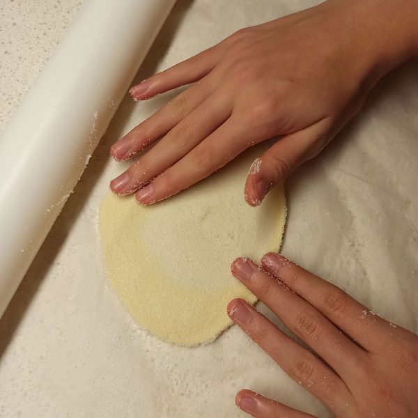 Mọi người có thể làm nhiều bánh, không chiên hoặc nướng, mà bọc từng bánh bằng giấy kính cling film, bỏ tủ đá. Khi nào cần, mang ra chiên hoặc nước, bánh sẽ vẫn ngon như thường!