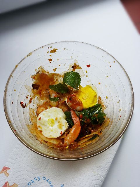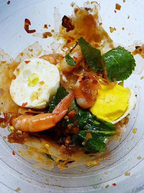 Thời mình học cấp 2, từ trên trời rơi xuống trào lưu ăn bánh tráng trộn, thật ra bánh tráng khi đó "nghèo" lắm, thuở ban đầu chỉ là 2 lát bánh tráng nhỏ như lòng bàn tay con Asia (20 tháng) và 1 bịch muối tôm tây ninh. Khi ăn thì cuộn lại như bọn tây hút thuốc tự cuốn. Thế mà chả hiểu sao chúng nó cứ ăn rào rào như châu chấu ăn lúa nông dân ý. tiếp đến thừa thắng xông lên, người ta làm giàu cho cái bánh tráng bằng cách: ngoài muối tôm thì có tý hành phi, tý tương đen/tương ớt. Bẵng thời gian mình chả ăn nữa, suốt kỳ bước chân vào cấp 3 đến gần hết đại học. Lúc đang làm Nielsen, nhớ đến bánh tráng trộn, nên em Ngọc chở mình đi mua về ăn. hí hí!! giào, giờ 1 bịch bánh tráng trộn rất hoành tráng nha: rau răm nè, trứng cút nè, ... thơm tho ngon lành, và giá mắc hơn cái bịch hàn vi nhiều, hồi ấy hình như 15000/bịch, chắc bây giờ 25K ??? ai ở VN lên tiếng đính chính giùm coi!! bánh tráng trộn tôm 3.jpg119 KB Hôm nay nhẩn nha làm tý ớt sa tế có mùi xả, khi không thèm món bánh tráng lạ thường! Thôi, làm luôn!! cái "version" của mình rất giàu có nha! ;D hí hí!! Ăn ngon kinh khủng, cay xè, ăn sưng cả mồm mà vẫn nhồm nhoàm hít hà nhai lấy nhai để. ;")