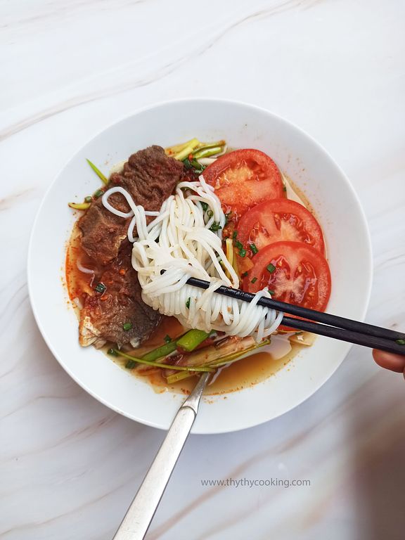 Trời! như 1 giấc mơ, mình nhớ trong lúc rảnh 10 phút, mình có viết nháp 1 cái công thức nấu ăn, gửi email cho bản thân hẳn hoi, giờ tìm hoài không ra. Tốn hết 20 phút để tìm cái email đó. Thôi, viết đại bà nó cho nhanh chứ mà ở đó ngồi mò tìm! Cáu hết mề! Túm lại là hôm nọ nấu tô bún cá ngon ghê, nên chụp hình ghi công thức cúng FB! Mãi hôm nay mới mò lên blog để post. Cứ than bận hoài, mà giờ không biết than sao. Vì ai cũng bận chứ có mình mình. À, anh béo nhà mình thấy không bận, lão cứ nằm chuầy chòa 2 ngày cuối tuần không nhấc tay nhấc chân lên làm cái chi! Hồi trước còn đi thể dục chèo thuyền, giờ còn bỏ luôn! Mệt! Trong khi mình đầu tắt mặt tối ngày thường lẫn weekend! Học sinh book học nhiều quá, kêu bỏ cũng không đành, nên gật. Thứ 7 đông học sinh quá chừng. Trường kêu mình đi dạy mình nói thôi tui bận muốn xỉu! Giờ quay lại tô bún cá thì mình dùng cá nục chiên (hoặc kho đều ô kê), mình không thích luộc cá, vì thứ nhất, làm nước tanh quá, thứ 2 nữa là cá luộc ăn chán nhách. :p Ở miền Nam có người còn bỏ chả cá thác lác, nhưng hôm nay mình giới thiệu 1 tô cá bình dân hơn. Để tuần sau mình đi mua cá viên chiên về làm tô bún cá khác nhìn giàu có hơn nha! :D bún-cá-cà-chua-(3).jpg2.26 MB