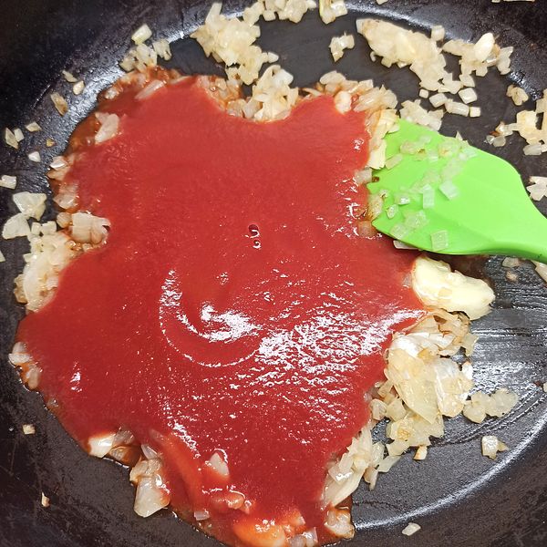 Cà chua băm nhỏ, ai có sốt cà chua passata di pomodoro thì dùng như mình. Ca chua tươi thì ngon hơn. :)