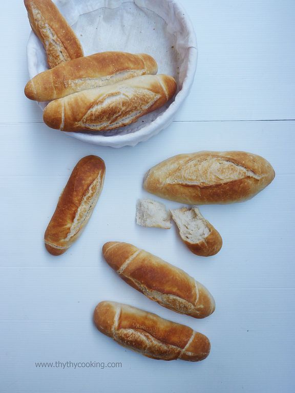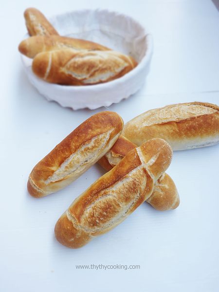 Nói nhanh gọn lẹ là so với các loại bánh mì phức tạp như Panettone, làm 3 ngày 4 đêm mới có bánh ăn thì cách làm này nhanh gọn lẹ rồi nhe! Món Việt Nam rất là phức tạp! cái gì cũng cắt nhỏ nhỏ, trăm loại rau mùi, làm xong là bếp như bị bỏ bom, đầu tóc thì bù xù luôn à. hic!Banh-mi---Vietnamese-food-(7).jpg815 KB Món bánh mì Việt Nam này rất được dân Tây yêu và các bạn láng giềng mê đắm mọi người ạ. Mình nhớ cả 17, 18 năm trước, chị Ngọc làm Sheraton với mình kể "ê Thy Thy, mày biết người Nhật mê món bánh mì của mình lắm hem? con em tao sống ở Nhật nói bạn bè nó còn xách tay cả chục ổ bánh mì về Nhật". Sau này mình thấy các đầu bếp nổi tiếng như Jamie Oliver và Gordon Ramsay cũng thích món bánh mì này. Và họ đều gọi nó bằng tên Việt Nam - BÁNH MÌ hẳn hoi. Do vậy khi mình làm YouTube tiếng Anh (yes! Tui có kênh Du túp nhoa! link đây nhoa - hé hé!! thừa cơ hội thì khoe luôn!) tui dùng nguyên tên tiếng Việt yêu dấu. Vì tui biết, ai đam mê ăn sẽ biết món này, ai không biết hả? Phải học đi nghe chưa! hé hé!! Mình cũng hay làm cho mấy đứa bạn ở đây (Ý, Romany, Peru, etc.), và ai ai cũng đam mê món này! Mình thấy đối với mình, bánh mì rỗng ruột chuẩn VN là khó nhất! mình vẫn chưa làm được. Cái bánh mì mình làm lần này khá giống ở 2 điểm: 1) Bánh vỏ mỏng nhưng giòng rụm 2) hình hài lúc bánh nở ra khá giống bánh mì VN. Coi như tạm chấp nhận! Lam-banh-mi-Viet-Nam---Vietnamese-food-(3).jpg696 KB