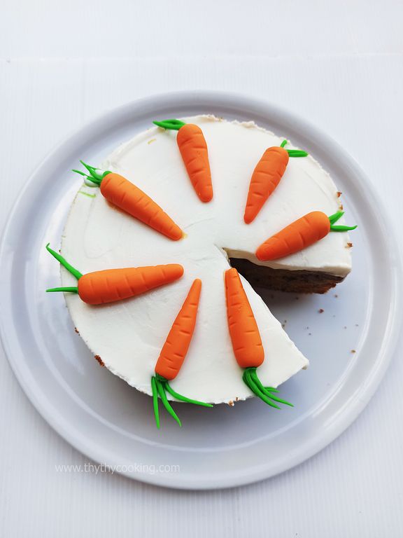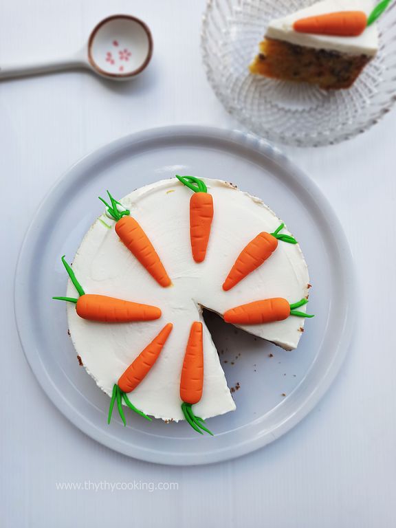 This cake is so addictive! It is moist, topped with refreshing, rich cream cheese. It's irresistible! My husband slurped 2 slices immediately after coming home and seeing the cake in the fridge! I shouldn't make it too often; otherwise, we would put on weight quickly! I decorate the cake with fondant carrots. Feel free to leave this step if you need more time to prepare. But it is totally worth it, as the decoration is impressive. Children love it! :D Carrot-cake-recipe,-công-thức-bánh-cà-rốt,-ricetta-della-torta-di-carota-(25).jpg989 KB