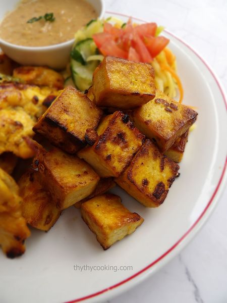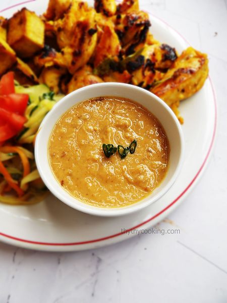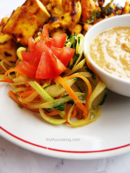 Món chicken satay hay thịt gà nướng xiên satay kiểu Thái là một trogn những món mình mê đắm nhất trên đời. Đặc biệt cái nước chấm bơ đậu phộng. Chèng ơi. Ăn 1 lần là nhớ mãi mãi. Hồi ở VN mình không có dịp ăn, nhưng từ khi qua đây thì cũng có điều kiện mở mang đầu óc hơn, nên mình du nhập món này từ 10 năm trước hay sao á. Rồi bẵng 1 thời gian dài mình quên mất. Cho đến hôm nọ, con bạn người Ý (nhưng rất đam mê châu Á, nó còn sống ở Trung Quốc 2 năm, và từng qua Việt Nam chơi), nói mình là ê Lâm drama, mày làm cái sốt đậu phộng đi. Thấy nó ra bài thì mình làm luôn món thịt gà cho tiện cả đôi đường. Mà đã làm thịt gà thì cũng phải có món gỏi xoài cho xôm tụ, thế là triệu con bé Quậy vào bếp ngồi cắt các loại rau củ cho mamma. 😆 À, mình làm cả đậu hũ satay vì hạn chế ăn thịt xíu. Ăn độn đậu hũ. Với bọn bạn mình ở đây ăn chay cũng khá thường xuyên, nên mình cũng ảnh hưởng tý xíu luôn, chăm ăn đồ chay hoặc hạn chế ăn thịt cá. chicken-satay---sốt-bơ-đậu-phộng-(2).jpg943 KB chicken-satay---sốt-bơ-đậu-phộng-(4).jpg852 KB