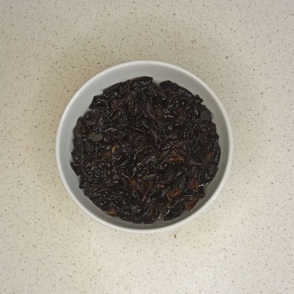 Shiitake mushrooms, soaked in water, stems removed, and sliced
