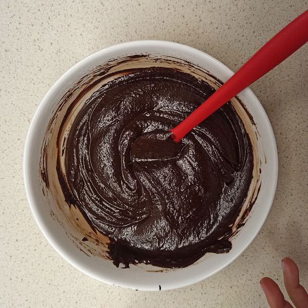 Whisk together the dry ingredients. Add the eggs, oil, vanilla, and water, beating until smooth. Pour the batter into the prepared pans.