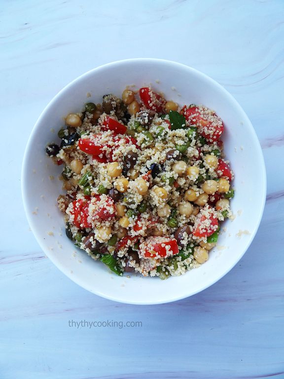 Mình làm event, con bạn mình nó đặt vegan cous cous. Nhiều quá ăn không hết nên cuối cùng mình với nó mỗi đứa mang 1 khay to đùng về nhà. Cous cous họ làm trộn với rau củ nướng, nhưng mình thấy không thơm mát cho lắm nên mình biến tấu thêm vào cho hấp dẫn. Cous cous này có nhiều kích cỡ lắm nhe, kích cỡ này khá phổ biến, nhưng họ còn có cous cous cỡ to hơn xíu. Mình thì thường mua cous cous nguyên cám để có chất xơ. Mình có làm cous cous kiểu Maroc cùng thịt hầm rất ngon, nhưng đang mùa hè, ăn cous cous trộn rau củ cho mát nhe! Vegan-cous-cous-món-ăn-mùa-hè-(3).jpg1.79 MB