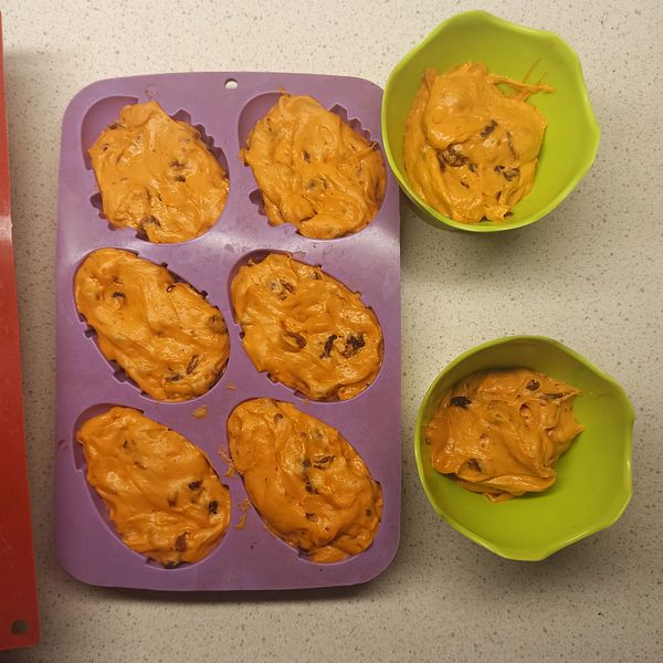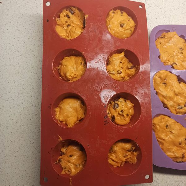 Put the dough into cupcake molds or any available mold. Note that the dough should only fill about 1/2 to 2/3 of the mold, as the bread will expand further.