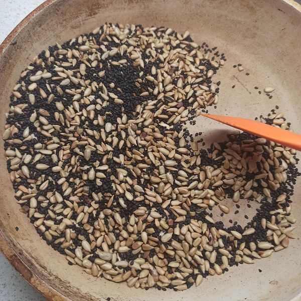 Gather sunflower seeds, black sesame seeds.
