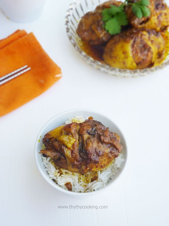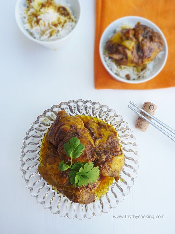 Mình nhớ lần đầu tiên mình ăn món này là khi mình 4 tuổi, mình ở nhà chị kia (hình như khi đó chỉ 16, 17 tuổi), chỉ nấu món này cay kinh dị, mình vừa ăn vừa xuýt xoa, mà hồi đó cũng ngoan ghê á, cay xé họng mà ko than 1 cái gì. Còn cố nhai cho hết nữa chứ. Sau này khi qua Ý, mình vẫn hay nấu món gà kho cà ri vì mình rất thích cà ri nói chung. Lúc em Hương, người HÀ Nội qua Ý học, em ấy ăn cà ri và bảo là lần đầu tiên em ấy ăn vì ở miền BẮc không có. SAu này mình mới biết thì ra món này rặt miền Nam. :D Hôm qua nấu mình chẳng cho ớt, bột cà ri Việt Nam có cay gì đâu, mà cái con bé Quậy ăn mỗi thịt, mình chan xíu nước cà ri lên cơm mà nó bảo cay nó chừa lại! Bởi! dư dả thì rững mỡ mà! (nói theo cách nói của bà ngoại của Quậy! :p). Ga-kho-cari---chicken-curry---Vietnamese-dish-(4).jpg899 KB