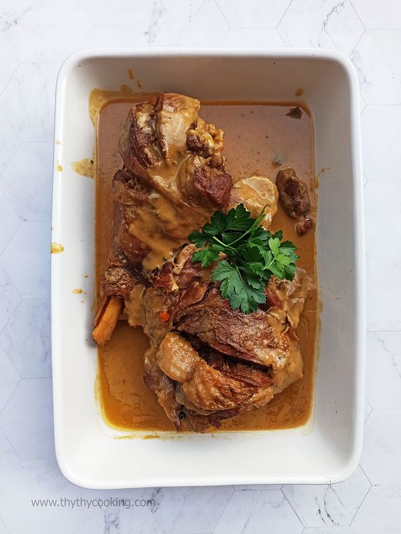 2 cái đùi to như hình, khứa vài nhát để thịt thấm gia vị