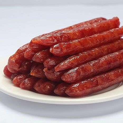 2. Chinese sausage: Chinese sausage, or lap Cheong, is a type of dried, sweet sausage made from pork, often seasoned with soy sauce, rice wine, and sugar. Its rich, savory-sweet flavor makes it a popular addition to stir-fries, rice dishes, and steamed buns. Chinese sausage is high in protein and fat, offering a satisfying taste and texture. It can be enjoyed on its own or used to enhance the flavor of dishes, providing depth and richness. When cooked, it becomes slightly crispy on the outside while remaining tender inside, adding a delightful contrast to fried rice and other recipes.