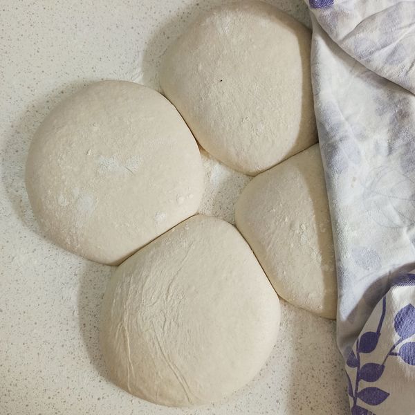 Prepare a generously floured surface, place the dough balls on the floured surface, cover them with a cloth, and let them rest for an additional 4-6 hours at room temperature in cold weather (or you can refrigerate them), or 2-3 hours in hot weather.