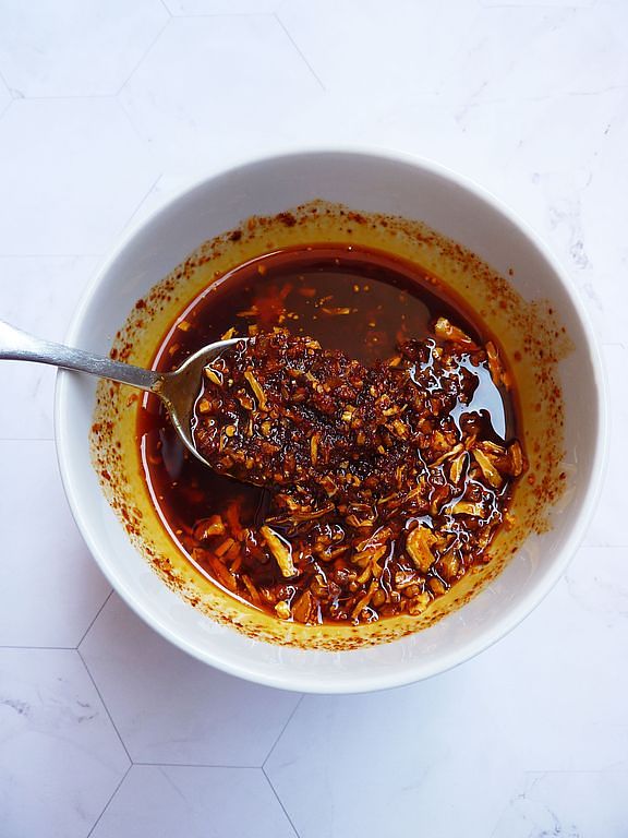 4. Once the oil has completely cooled, transfer it to a clean jar and seal it tightly. This helps preserve its freshness. Remember to always use a clean spoon when scooping out the chili!