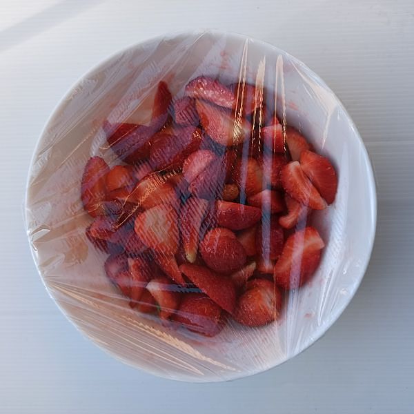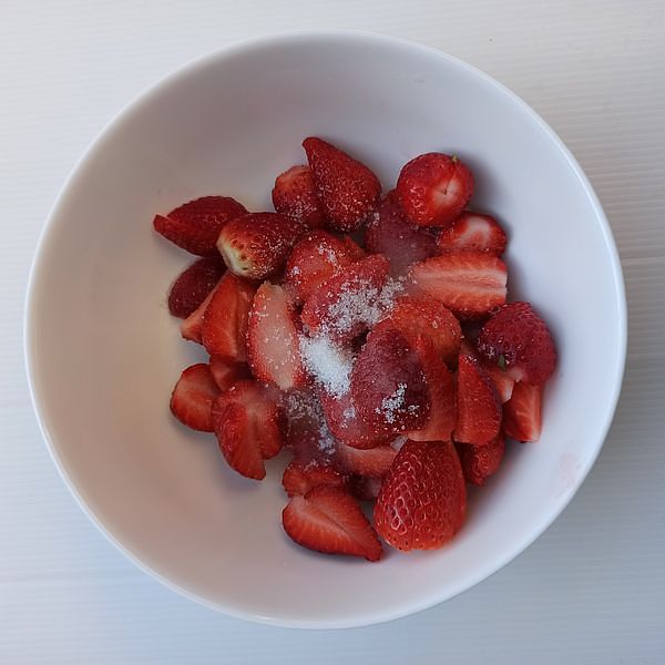 Cut the strawberries into bite-sized pieces.