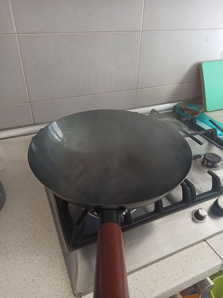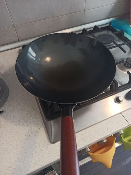 Lần này tui lại cố thêm đợt nữa! tui mua cái wok từ tận nước Trung Hoa xa xôi, vì đây là 1 cái chảo wok đích thực người tàu hay xài. Ở Sài Gòn, nhà tui ở gần khu người Tàu. Tui thấy mấy chú đầu bếp xài wok lửa tưng bừng, chiên mì, chiên cơm điệu nghệ và không dính. Nên tui lại ... bắt mình phải cho bản thân thêm cơ hội nữa. Dù anh béo nhà tui thì đã phát chán lên với cái đống nồi niêu chán bát của tui. Nhưng xin lỗi anh! Ai có tiềng người đó có quyền! hế hế!!! Tiềng tôi thì tôi cứ mua đấy! Mỗi lần anh béo dỗi, bảo là "anh sẽ vất hết các thứ đi cho xem" thì tui thường nói ảnh "khi đi vất, anh ở lại đấy luôn đi, đừng về nhà nữa nhé!" :p