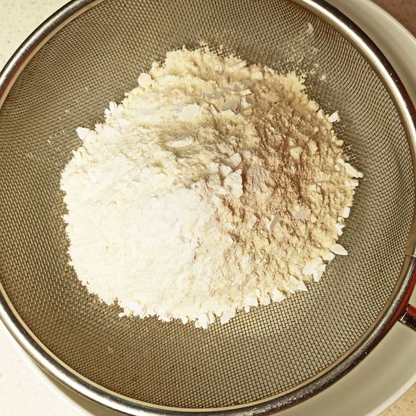 Sift into a large mixing bowl the flour, baking powder, sugar, and salt.
