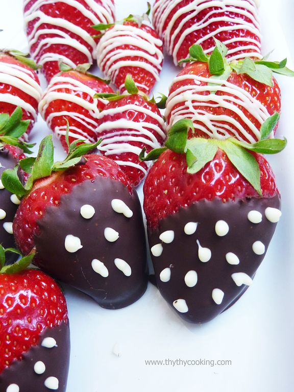 Dip the fresh strawberries in dark chocolate and place them on a baking tray lined with parchment paper.