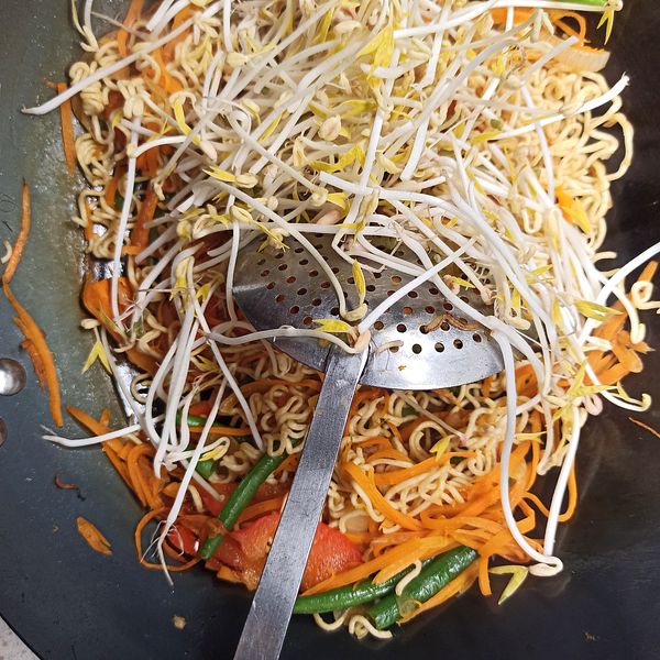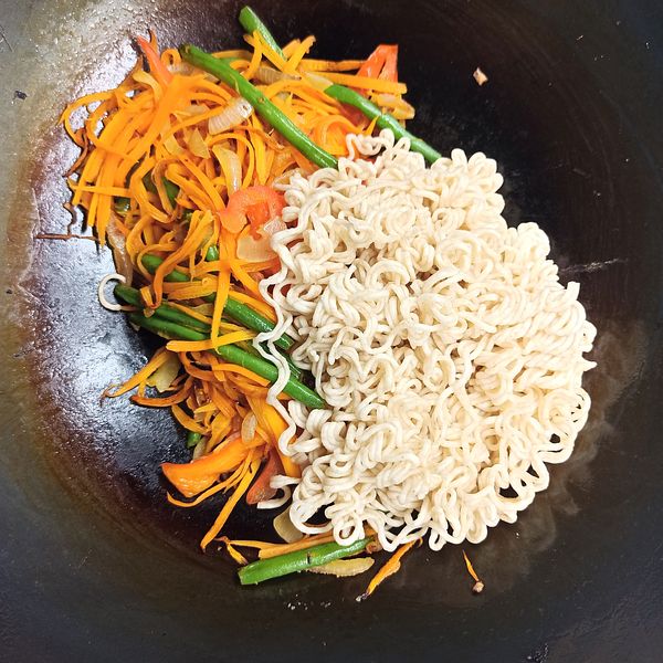 Từ khi gái nhỏ ăn chay thì mẹ mẹ cũng siêng nấu món chay hơn. Món này mình dùng mì gói wholewheat nguyên cám không chiên của siêu thị Aldi, đây là loại mì gói mình thấy "healthy" nhất mà mình từng được ăn.