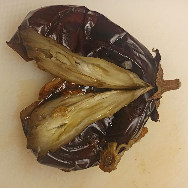 Cà tím nguyên trái, cho vào lò nướng, nướng cho chín mềm