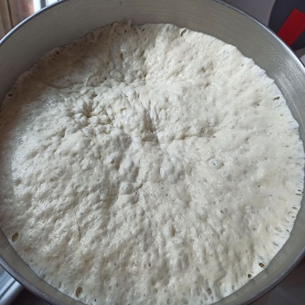 Cover the dough and let it rest for about 2 hours or until it doubles in size (about 2.5 - 3 times the original size).