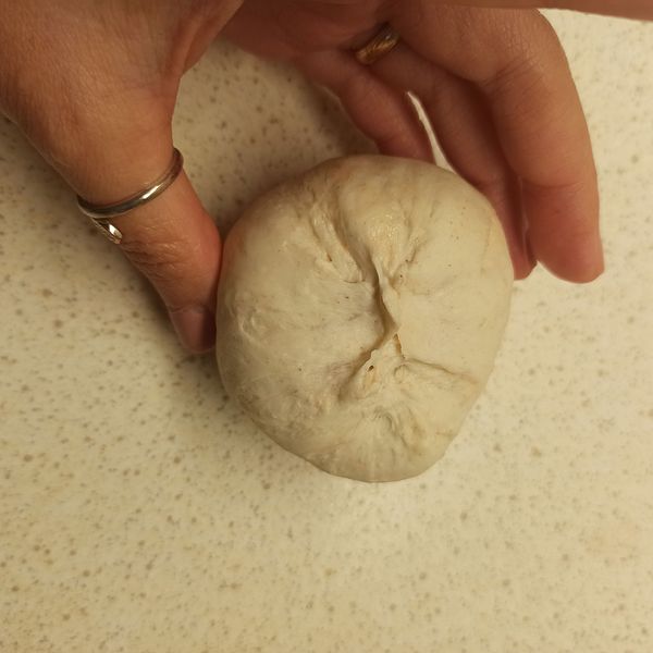 Tạo hình trái banh nhỏ như lòng bàn tay, ấn nhẹ cho trái banh hơi dẹp, cho lên khay có giấy baking
