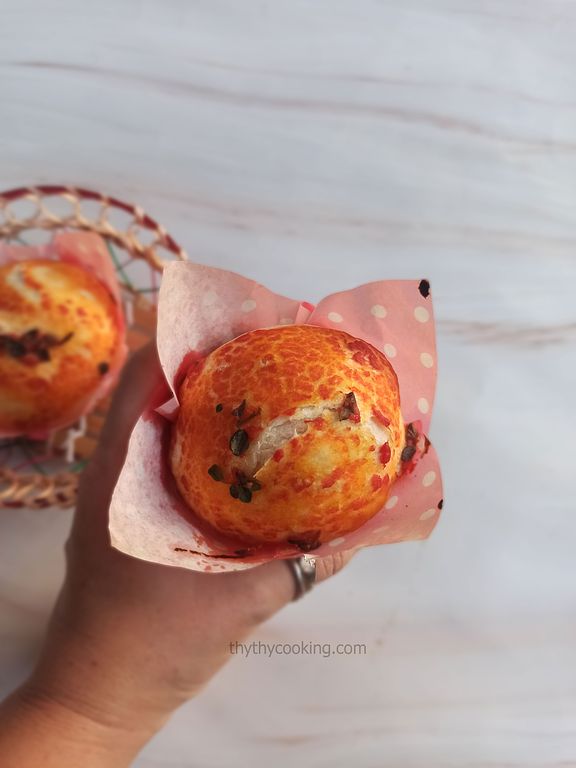 Lần này mình không dùng mozzarella vì muốn nhân bên trong luôn mềm mịn nên dùng pho mai dạng miếng hoặc pho mai con bò cười. (Mozzarella thường bị cứng lại sau khi để nguội, nó chỉ ngon khi ăn nóng hoặc tươi làm ngay trong ngày).