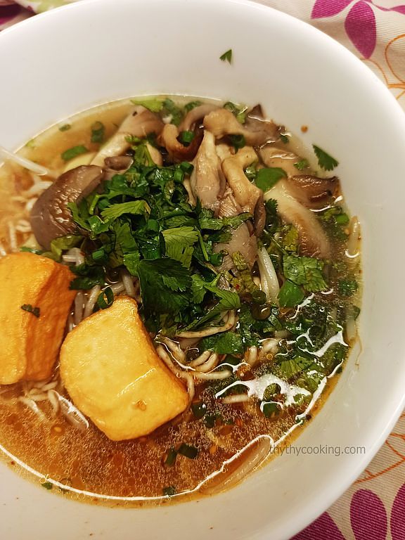 Quindi, anche se non ho ancora padroneggiato il ramen giapponese autentico, per ora accontentiamoci di questo ramen con tofu e funghi. Ahaha! Questo piatto è gustoso, leggero e sicuramente più basso in calorie rispetto a una ciotola di ramen giapponese! 🫢😝