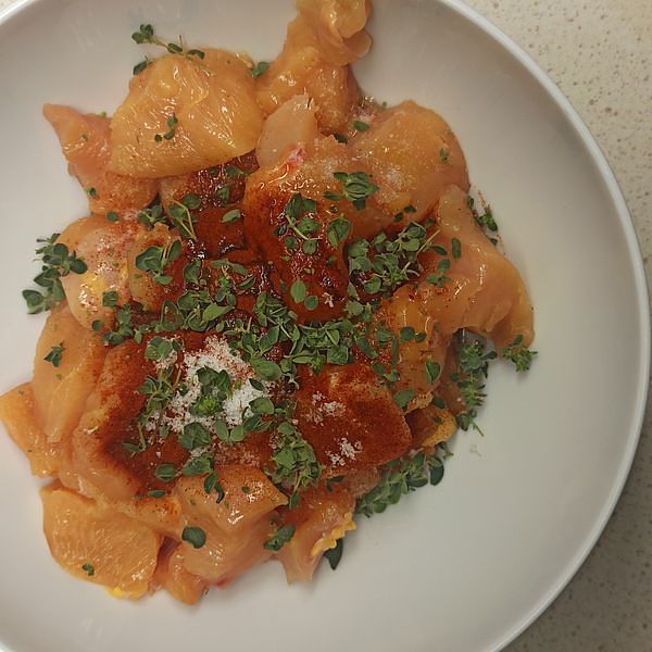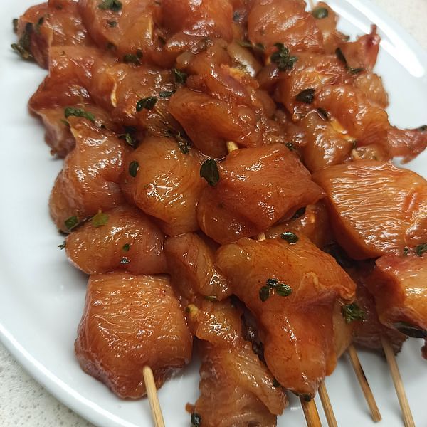 Gli spiedini di pollo in stile greco, o "souvlaki", sono un piatto saporito e aromatico che cattura l'essenza della cucina mediterranea. Teneri pezzi di pollo vengono marinati in un mix di olio d'oliva, succo di limone, aglio, origano e un tocco di paprika, infondendo alla carne sapori vivaci e freschi. Il pollo marinato viene poi infilzato sugli spiedini e grigliato alla perfezione, ottenendo un esterno affumicato e leggermente bruciacchiato, mentre l'interno rimane succoso. Questi spiedini sono spesso serviti con pita calda, salsa tzatziki cremosa e un contorno di verdure fresche come pomodori, cetrioli e cipolle rosse. Leggeri, sani e ricchi di sapore, gli spiedini di pollo in stile greco sono un pasto ideale per riunioni, barbecue o una cena veloce e soddisfacente. greek-style chicken skewers 2.jpg85.2 KB Lo sapevi: 1. Petto di pollo: Il petto di pollo è una fonte di proteina magra e versatile, apprezzata per il suo sapore delicato e il basso contenuto di grassi. È ricco di proteine di alta qualità, essenziali per lo sviluppo e la riparazione muscolare, e fornisce importanti nutrienti come la niacina, la vitamina B6 e il fosforo. Il petto di pollo può essere grigliato, cotto al forno, saltato o bollito, rendendolo adattabile a vari tipi di cucina e stili di cottura. La sua capacità di assorbire marinate e condimenti come spezie e erbe ne esalta il sapore, rendendolo un favorito per pasti sani e deliziosi, che spaziano dalle insalate ai piatti principali sostanziosi.
