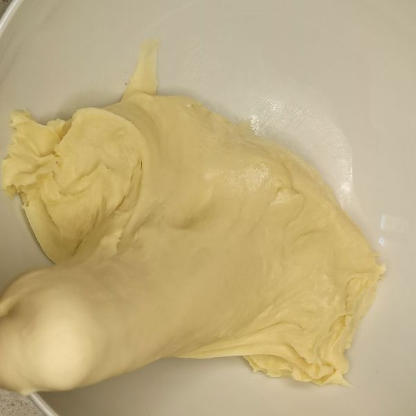 Combine the ingredients for the white dough in a bowl and knead until smooth and elastic for 10-15 minutes. Cover it tightly and let it double in size.