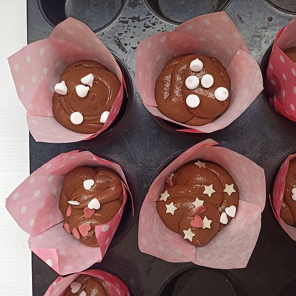 Pour the batter into a pan lined with non-stick baking paper. The cake should be about 3 cm thick. Any leftover batter can be poured into cupcake molds for easier transport, especially for children to bring to school.
