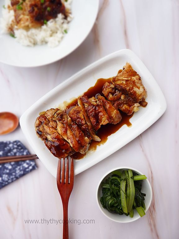 Fry the meat until fully cooked, with crispy golden skin. I use a cast iron skillet, super hot and retains heat well, no need to add oil. Grill on both sides until the skin is crispy and golden, the meat is fully cooked and still moist. I'm a fan of cast iron pans.