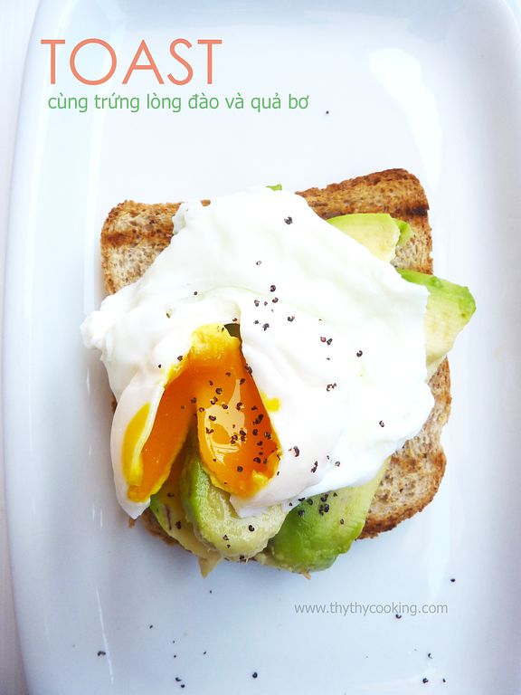 Prepare a pot of water on the stove, once the water starts boiling, gently add the egg. Do not stir, wait for about 1 minute until the yolk is slightly cooked (when it turns white). After approximately 1.5 minutes, when the yolk has turned white and thick, carefully scoop it out and place it on the buttered bread.