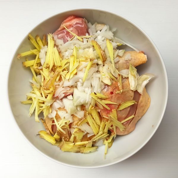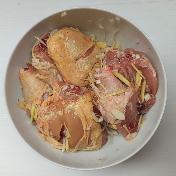 Chicken meat cut into bite-sized pieces (I cooked it slightly Western-style, so the pieces are a bit larger. In Vietnam, people usually use chopsticks for eating, so they may prefer smaller cuts of meat. When I try to cut the meat at home, the bones often break or shatter, and occasionally while cooking. These tiny bone pieces would be very unpleasant or even bad for teeth!)