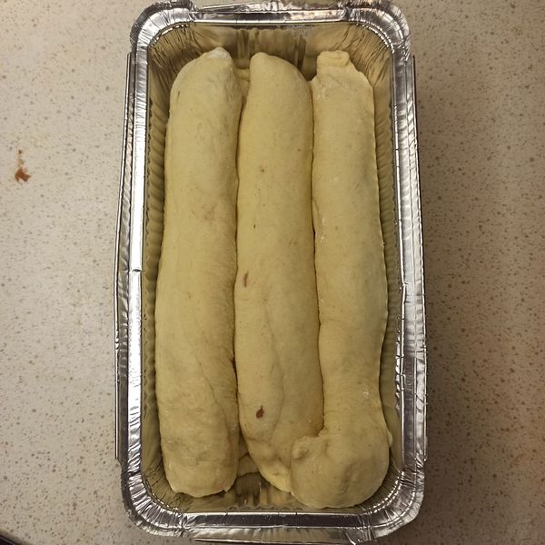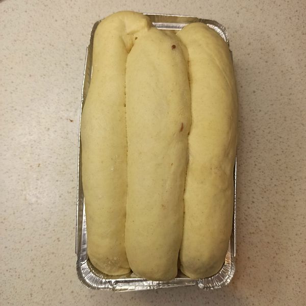 Let the dough proof for a second time until it slightly doubles in size. Once you notice the dough has expanded, preheat the oven to 180 degrees Celsius and bake for about 10-15 minutes. The bread is ready when it turns golden brown.