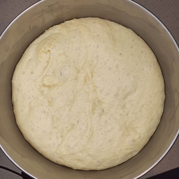 Let the dough rise until it doubles in size. In the winter, the dough may rise very slowly, so you can preheat the oven slightly to create a warm environment, then turn it off and place the dough inside to proof.