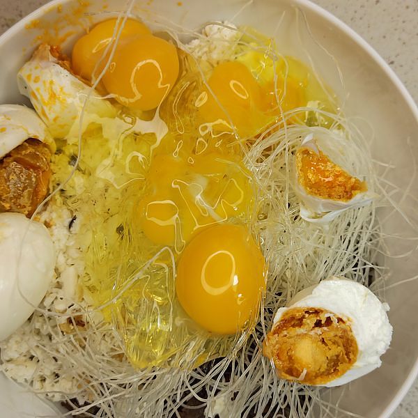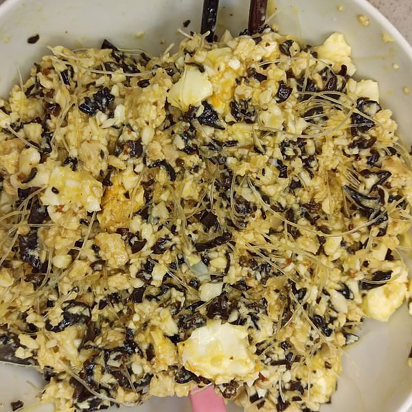 2. Vegetarian egg loaf: Vegetarian egg loaf is a plant-based dish made with firm tofu, which provides a protein-rich base and a smooth texture. The addition of wood ear mushrooms adds a unique texture and earthy flavor. Glass noodles, when kept dry, help bind the loaf together while maintaining firmness, and finely chopped taro contributes a slightly sweet, starchy element. Minced garlic and shallots enhance the overall flavor, while eggs provide richness and help hold the ingredients together. This loaf can be sliced and served as a main dish or a hearty side, offering a nutritious and satisfying option for vegetarians.