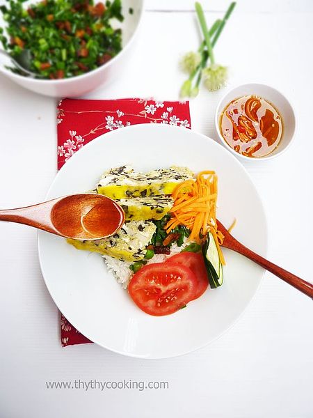 Weightwatchers (Opt for losing weight): To make Vegetarian Broken Rice with Egg Loaf more weight-loss-friendly, use a smaller amount of firm tofu or substitute it with a lighter protein option like edamame for lower fat content. Consider reducing the quantity of salted egg yolks and replacing them with a lower-calorie alternative like egg whites to maintain protein while cutting calories. Limit or omit sugar in the pickled vegetables, using just vinegar to enhance flavor. For the broken rice, consider using a smaller portion or substituting half with cauliflower rice to reduce carbohydrates. Omit pork cracklings in the scallion oil for a fully vegetarian option, and adjust the fish sauce mix by reducing sugar and salt for a healthier seasoning. This way, you keep the dish flavorful and satisfying while making it lighter.