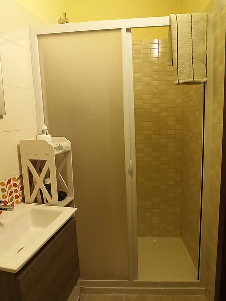 Phòng tắm đứng nè. Vô phòng tắm này thì nước chan chứa chan chảy sao cũng được. Mọi người thấy cái khăn vắt trên cửa không? Đó là khăn lau khô chân. Tắm xong thì dùng cái khăn đó để lau khô chân trước khi mang dép (ở Ý luôn có dép mang trong nhà). Lau xong thì lại vắt cái khăn ấy lên cửa cho nó khô ráo. Mọi thứ đều nên khô ráo để tránh vi khuẩn và nấm mốc. Để tránh vi khuẩn, nấm mốc và giữ phòng tắm "thơm tho", thì phòng tắm nên luôn phải có cửa sổ. Dùng xong thì mở toang cửa ra cho mùi và hơi nước bay đi hết. Bí quá nếu không có cửa sổ như căn nhà này thì nên có máy thông gió tự động, khi có người vào là nó sẽ hút khí đi để phòng không bị hôi hoặc ẩm thấp quá nhiều. 👌 Nhưng theo mình, phòng tắm và toilet luôn nên có cửa sổ.