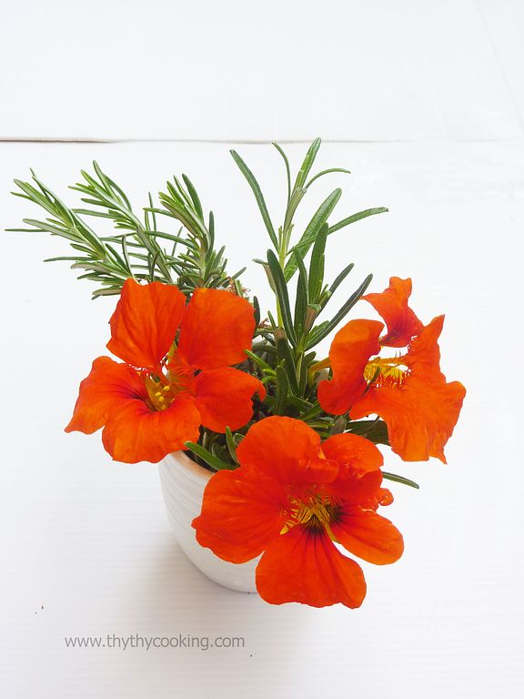 Hôm qua mình ăn thử lá và hoa của nó cùng chả giò. Ôi, ngon các mợ ạ! Lá thơm thơm nhè nhẹ như lá sà lách xoong VN nhưng mùi nhẹ hơn (thì salad xoong tiếng anh là water cress thì phải, cái này là Indian Cress). HOa thì thơm nhè nhẹ! Ôi, thương kinh khủng! Mình khuên ai có ngón tay đen như mình, đụng cây nào chết cây đó là hãy thử trồng Indian Cress! Đảm bảo hang xóm sẽ nghĩ bạn có ngón tay xanh! Hahahahah!!